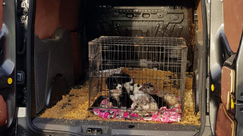 They searched the van and found six collie type puppies in a cage in the load space of the vehicle.