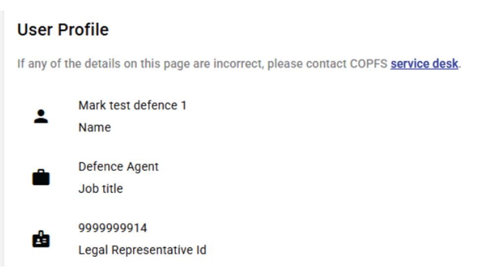 Please ensure these details are kept up to date. Contact COPFS IT Service Desk to add and remove delegates from your account.