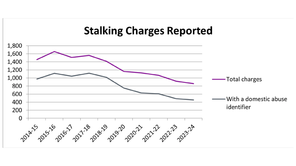 From 1 April 2019, if an offence that would previously have been reported as a stalking charge under section 39 of the 2010 Act was part of a course of conduct of domestic abuse, where appropriate it will have been reported as part of a charge under section 1 of the Domestic Abuse (Scotland) Act 2018. This will have contributed to the fall in the number of stalking charges reported since 2019-20.